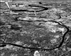 Damming the Cumberland River in that spot, about two miles below the Old Hickory community and a half